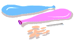 Step 1: Put the pink balloon inside the blue one and blow into both of them together.