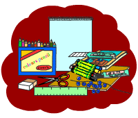 Stationery: Pencil, eraser, sharpner and ruler and cardboard