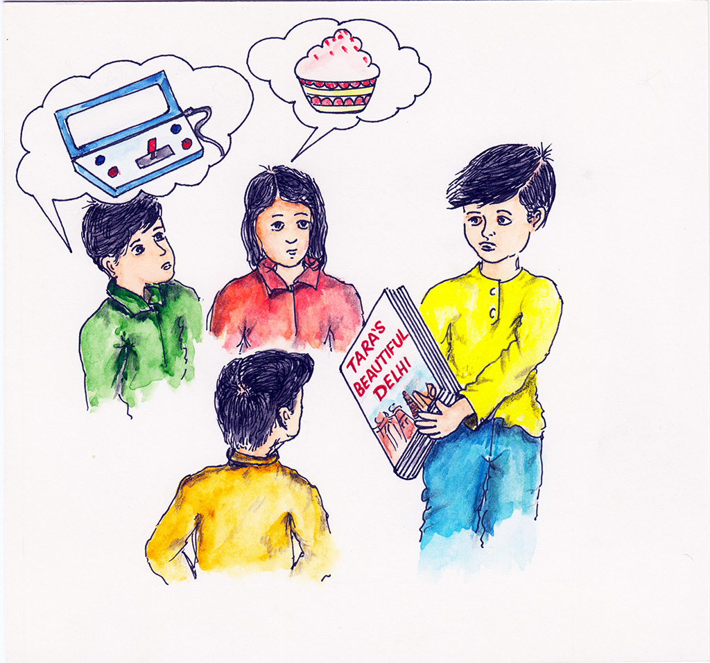 ‘Yes. My cousins are coming to stay. Papa says I should give them the video game,’ said Kartik. ‘Why didn’t Shona give me the book?’ Asked Shobhan. ‘She wanted my calculator for one. I told her that she could use it if she returned ‘Tara’s Beautiful Delhi’. She gave it to me because she had read it at least ten times,’ finished Kartik smiling.