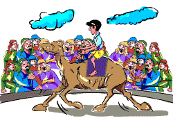 Camel-races are a favourite pastime of rich Arabs. They are like any other race except for one thing. Instead of adults, children are placed on the backs of the camels, and made to race. These racers are called jockeys.